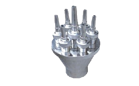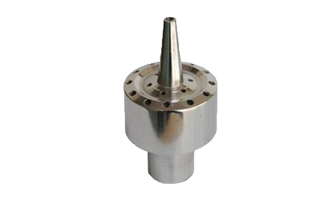 由中心直上合兩圈不同層次及角度圓孔組成,噴射形成中心水柱和兩層外向拋射的拋物線(xiàn)狀水花,該噴泉噴頭可以獨(dú)立使用也可以組合其他噴泉噴頭使用,形成多種噴射形狀
